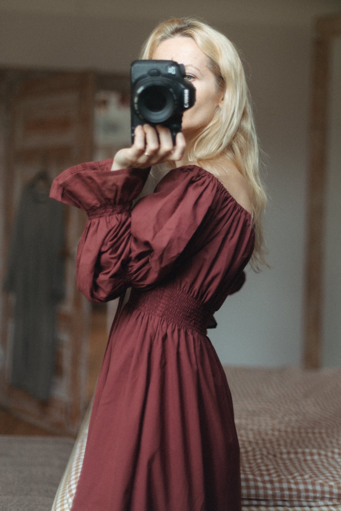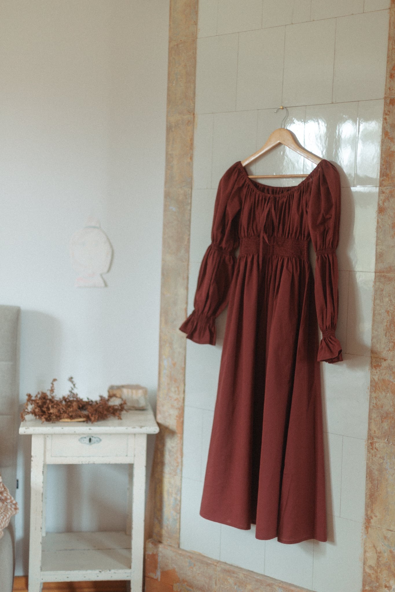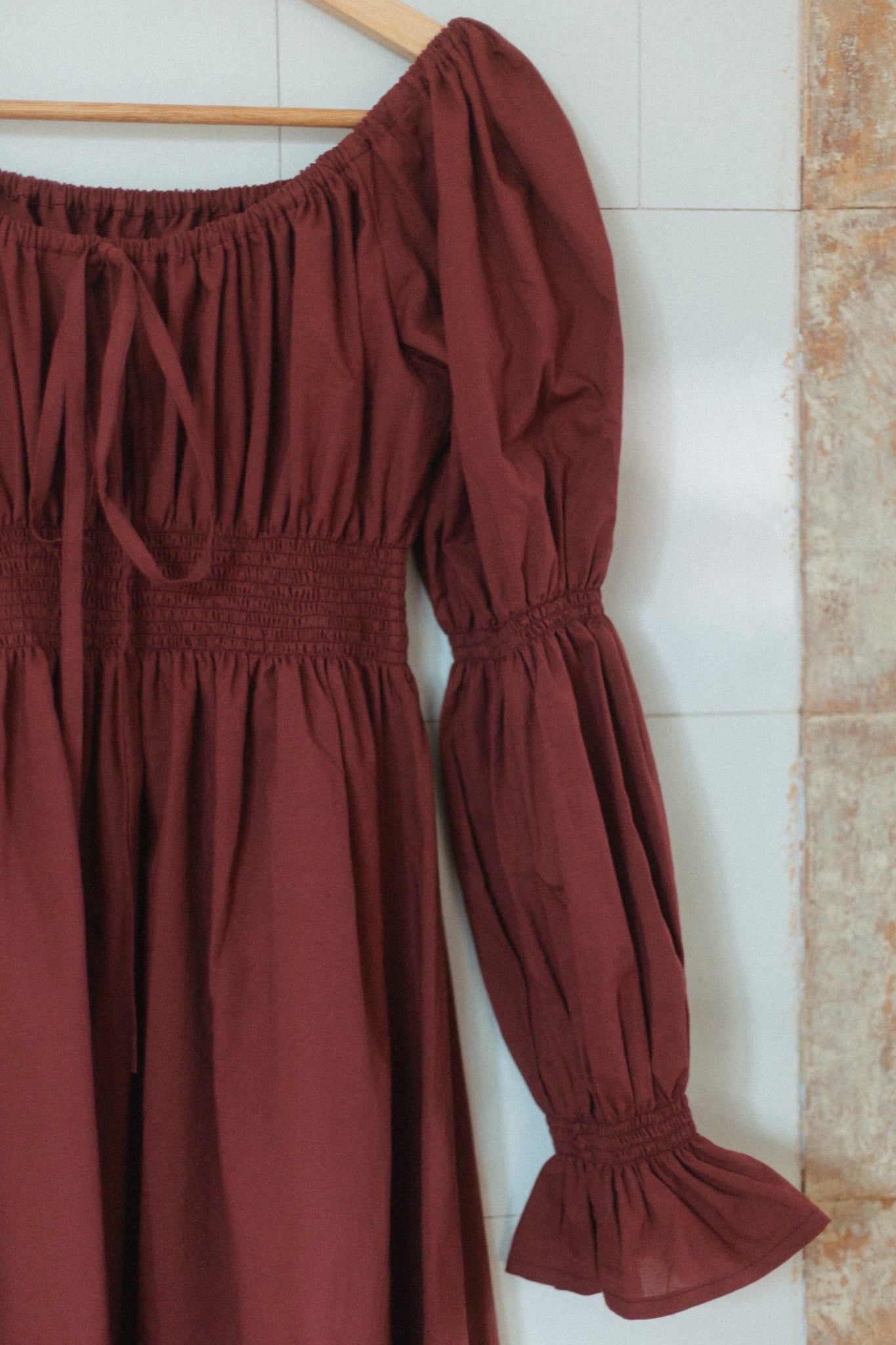 Sunrise Dress — a piece made to honor the moments that matter. Crafted from 100% cotton with a lining, it offers comfort that feels effortless and beauty that feels timeless. Its deep, wine tone brings a sense of quiet elegance, perfectly suited for celebrations, gatherings, or simply meaningful days at home.