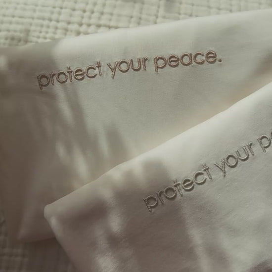 It features an embroidered message on the front that reads ‘Protect your peace’ in light petal/cream, along with the Slowise logo on the back.